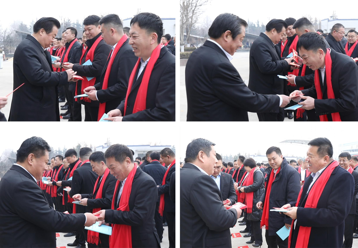 董事長倪立營、總裁倪奉堯帶領(lǐng)經(jīng)營管理層為營銷將士發(fā)放出征紅包,激勵(lì)大家要敢于拼搏,砥礪奮進(jìn),2023年以新面貌、新姿態(tài)迎接新挑戰(zhàn)。